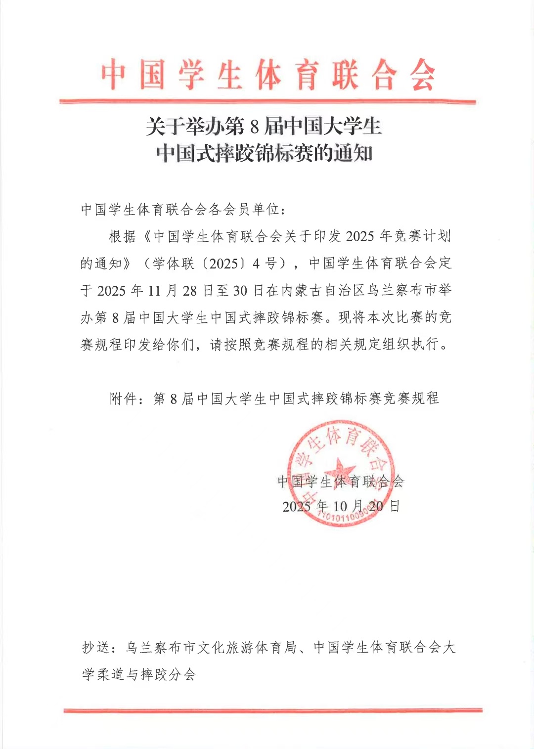 关于举办第8届中国大学生中国式摔跤锦标赛的通知