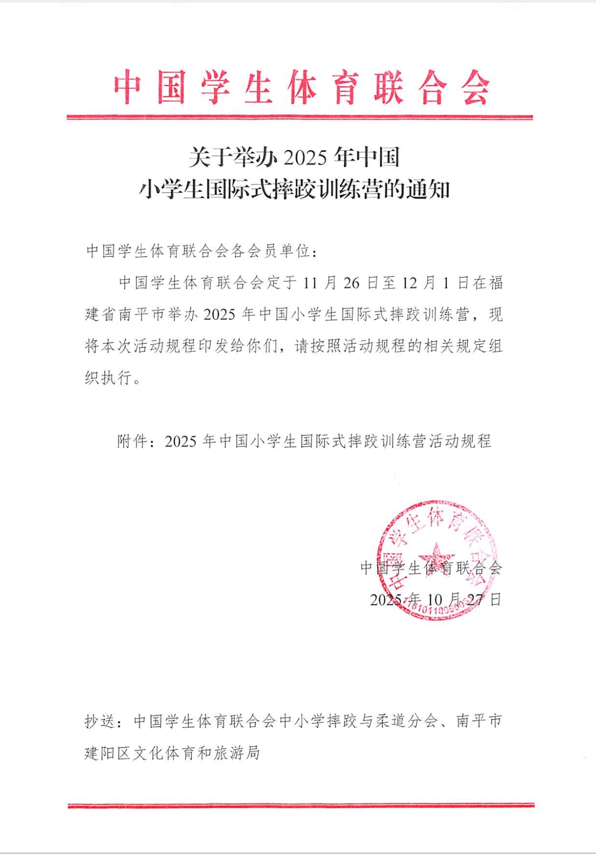关于举办2025年中国小学生国际式摔跤训练营的通知