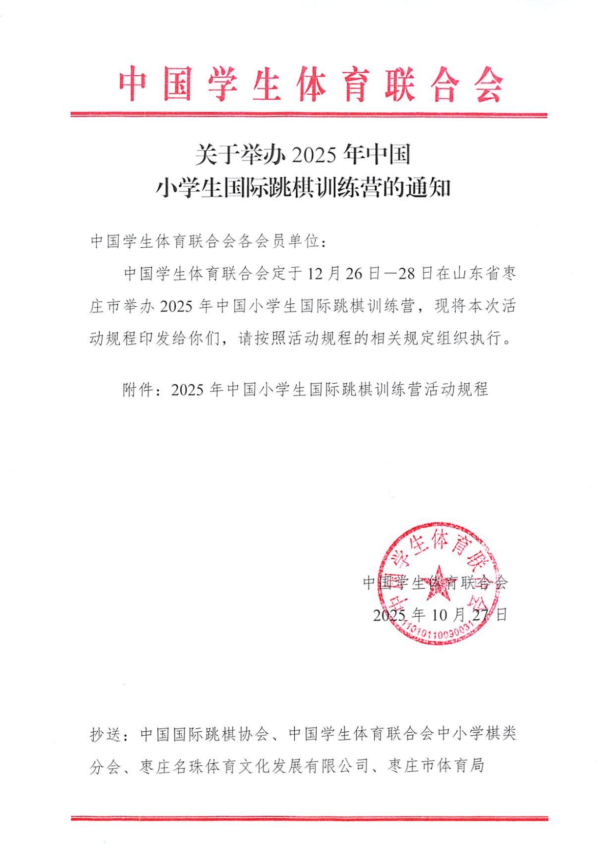 关于举办2025年中国小学生国际跳棋训练营的通知