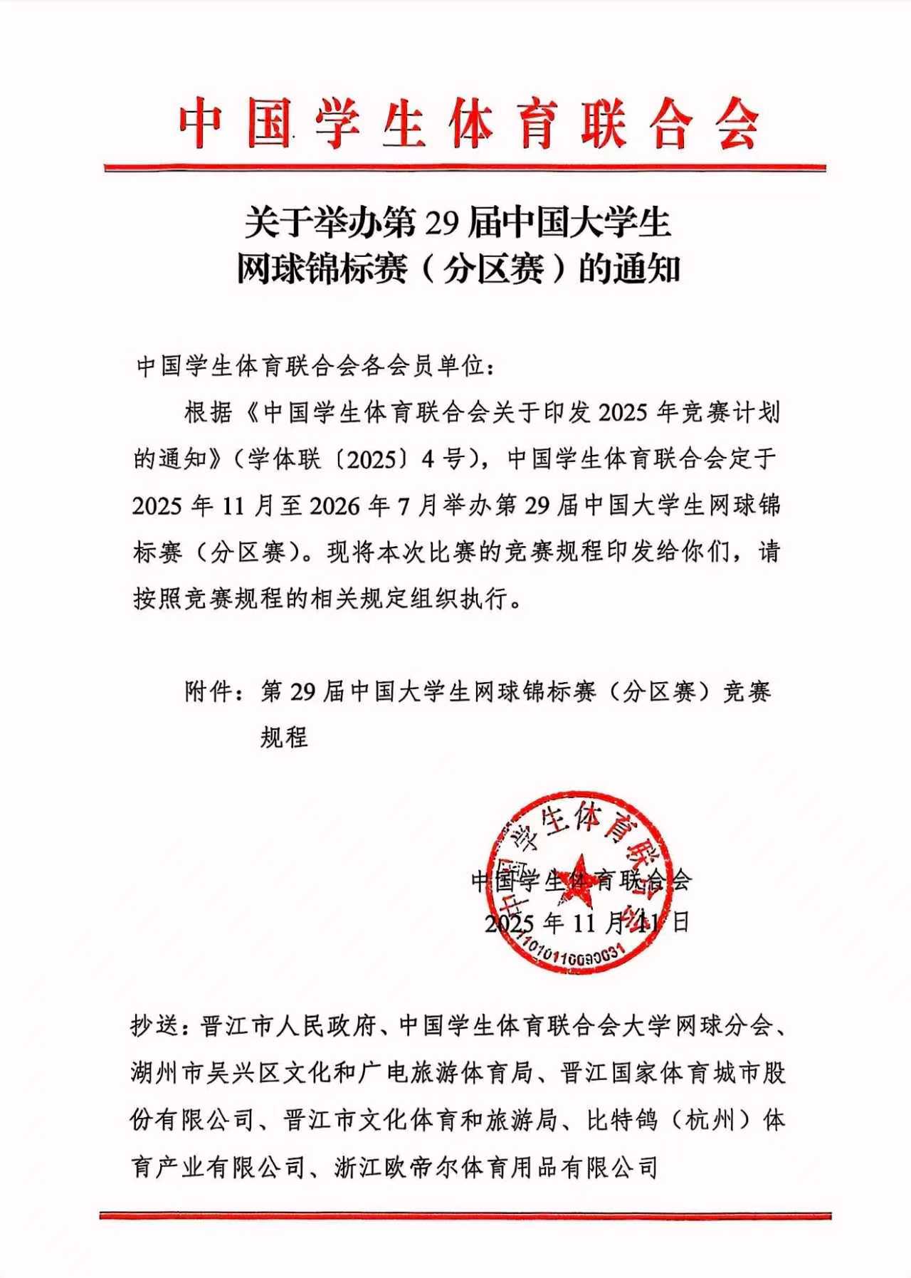 关于举办第29届中国大学生网球锦标赛(分区赛)的通知