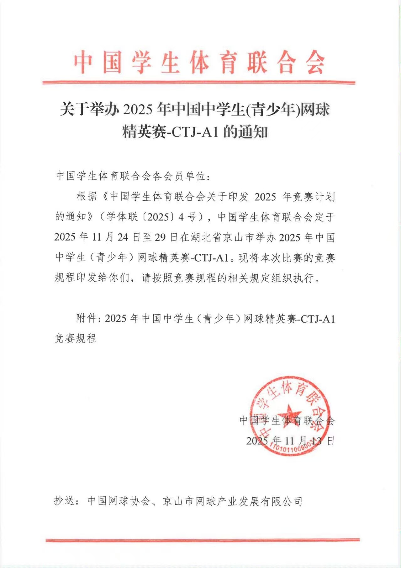 关于举办2025年中国中学生(青少年)网球精英赛-CTJ-A1的通知